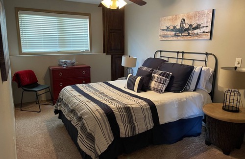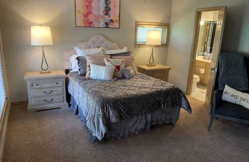 This home has 4 bedrooms and sleeps 8 adults as well as additional guests on sofas in the living areas. Fully stocked kitchen is stunning with granite counter tops, and everything you need to cook for 2 to 20. Washer and dryer in unit as well as gas grill. Master bedroom has a king size bed and located on main level of home along with another bedroom with a queen size bed with in suite bathroom. On the lower level, there are 2 additional bedrooms, both with queen size beds as well as 2 full bathrooms. The house sleeps 8 comfortably in beds. There is also a 2nd living area and regulation slate pool table. Home boasts over 3700 square feet of living space.
