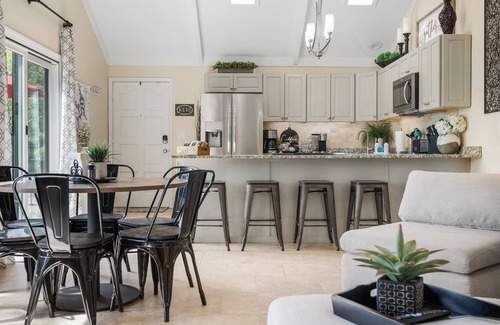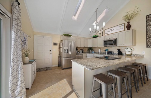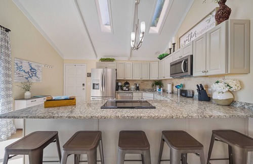 You will feel right at home in the fully-equipped kitchen including a coffee bar, toaster, blender, crockpot, spices, grilling accessories & even a Margarita Machine! A gas grill with propane is available for your use. Seating for 6 at the table and an additional 5 stools at the counter. There is a 50” Smart TV in the main level living area and a 60” Smart TV in the downstairs family room/game room.
