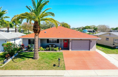 Come enjoy your perfect hideaway in conveniently located Port Richey. Relax in your private heated pool, or go fishing and kayaking right in your back yard. Centrally located it is a short distance to the activities of Tampa and Clearwater Beach to the south and Crystal River to the North. The house has two private bedrooms with queen beds, plus a third bedroom room with two twins and full laundry. All rooms have TV’s. Enjoy the BBQ, gas fire pit, two kayaks and beach accessories are provided.