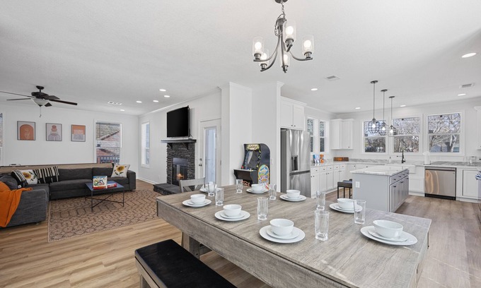 Board games like Connect Four, Monopoly, and Trouble are readily available, ensuring everyone is entertained even when they're not out on the lake. The house features a fully equipped kitchen, 2 kayaks for your enjoyment, high-speed Wi-Fi internet, an LCD SmartTV with streaming channels in every room, and a vibrant and colorful décor that adds to the overall atmosphere.
