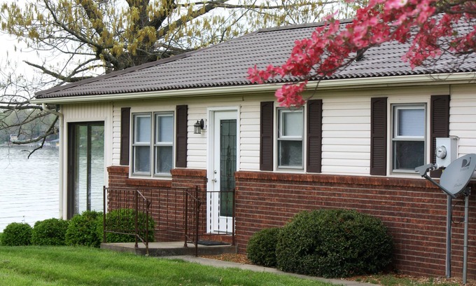 Come explore what Southern Illinois has to offer for your next family getaway! The "GUESTHOUSE AT THE LAKE" has it all! 3 bedrooms with 4 queen beds, 1.5 baths, Beautiful Sunroom (no screens), Dock with electricity, Beautiful Lake Views, Fire Pit, Wifi, Outdoor Grill, Carport, Washer/Dryer, Flat Screen TV's/DVD player, Direct Tv including the Sports Package, Fully stocked (just bring food and toiletries), recently renovated, includes use of two Kayaks with paddles (please bring your own Life Vests). The house is on one level with only 1 step to get into the home. The land is flat to the lake with no steps down to the dock!!!!!