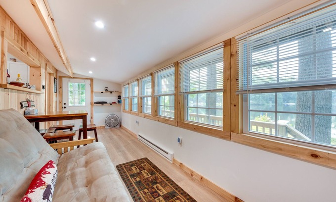 The serene beauty of Limerick awaits you at this picturesque lakeside retreat. Situated just steps from the shoreline, this cottage offers a canoe and kayaks, a private beach, a boat dock, and more. If looking to stay on dry land, imagine a nap in the hammock, grill a feast to enjoy on the deck, and then finish the day with s’mores. When ready to venture out, enjoy easy access to Hosac Mountain and Willowbrook Museum Village, or take a quick drive to do some downhill skiing.