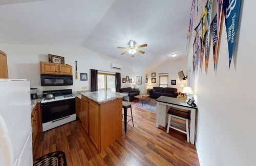 The Guest House** is a separate unit and provides 2 queen bedrooms, 1 full bath, TV, Wifi, AC, and kitchen as well as a private picnic table and patio area and a washer and dryer in the garage. The guest house sleeps a maximum of 4. (GUEST HOUSE IS SEASONAL AND INCLUDED IN THE MAIN HOUSE PRICE FROM MEMORIAL WEEKEND UNTIL MID-OCTOBER).