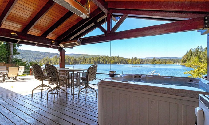 Best-rates for the Shawnigan Lake house starts from $471 per night with includes Ocean View, Balcony/Terrace, Wellness Facilities, Entertainment, Air Conditioner, Parking, Fireplace/Heating, Child Friendly, TV, View, Security/Safety, Bedding/Linens, Hot Tub, Kitchen, Barbecue/Outdoor Cooking, Internet, Laundry StayAndPlay offers fully equipped golf villas, golf hotels, golf resorts, luxury golf cabins, and exclusive golf retreats, making it easier than ever to find your perfect golf escape — ideal for families, peaceful getaways, or pet-friendly retreats with the whole crew.