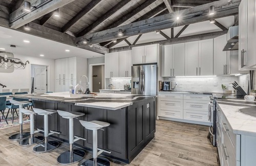Our incredible kitchen has a large island and eat-in breakfast nook. It contains every dish, utensil, and cookware that you will need for your stay. Small appliances provided include: coffee pot, Keurig, crockpot, air fryer, InstaPot, toaster, Ninja blender, and hand mixer. A variety of condiments and baking supplies are provided, as well as Keurig pods and traditional ground coffee. An extra refrigerator in the hallway and a kitchen pantry provides plenty of storage for your food and beverages.