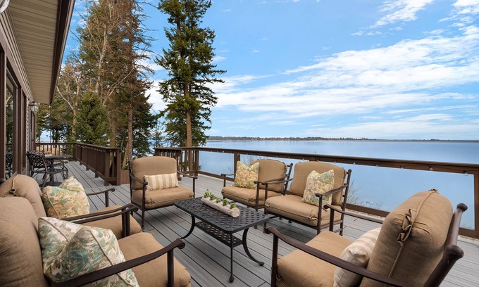 Relish a dip in the hot tub while taking in the picturesque views of the stunning lake.