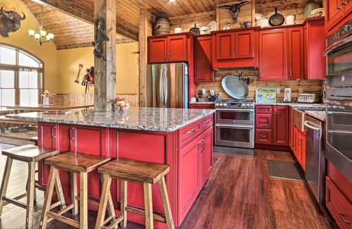 KITCHEN: Fully equipped, stainless steel appliances, gas stove, dual ovens, Keurig coffee maker, high-end finishes, pots, skillets, electric roaster, blender, food processor