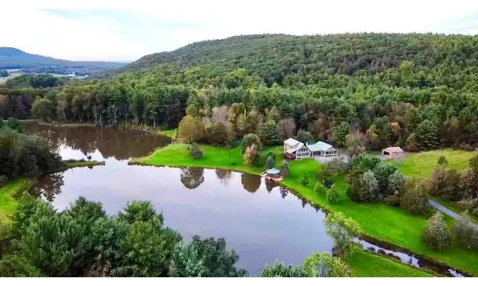 This secluded upstate NY luxury offers the ultimate outdoor nature escape with a private lake, and no neighbors in sight. Rejuvenate while kayaking and watch birds of prey. Hike, xc and snowshoe out the front door through the wooded wonderland. Relax by the fire pit under starry constellations, Breathe in the tranquility and catch a glimpse of the northern lights. The long driveway ensures ultimate privacy. Only 30 min to Hunter/Windham, 5 min to sport climbing, close to Woodstock and 20 min to Albany.