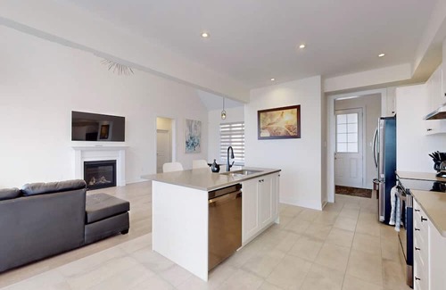 Welcome to our lakeview retreat, featuring 6 spacious bedrooms, each with a queen bed, comfortably sleeping 12 guests. The main floor includes 4 bedrooms: the master with an ensuite, another full bathroom, and a powder room. It also hosts a laundry room with a washer, dryer, and linen closet. The second floor offers 2 additional bedrooms, an open concept loft with stunning lake views, and a full bathroom. Our fully equipped kitchen includes a fridge/freezer, stove, microwave, and dishwasher. Enjoy meals in the breakfast area overlooking the lake or use the BBQ in the backyard for outdoor dining. The home is filled with natural light, complemented by blackout blinds in all rooms for a restful sleep. The open layout includes a smart TV with cable and access to streaming apps (login required) and free WiFi, ensuring both comfort and connectivity during your stay.