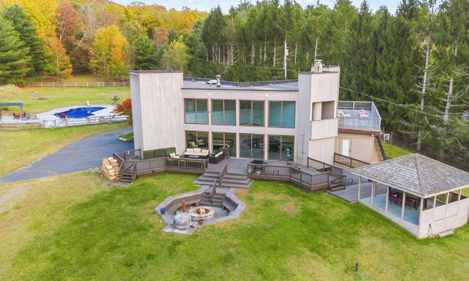 Welcome to our newly renovated contemporary home, where every detail screams luxury and comfort! Situated on the shores of Swinging Bridge Reservoir, the largest motorboat lake in Sullivan County, prepare to be captivated by sprawling lakefront views from our floor-to-ceiling windows. With 5 acres of land to explore, including an inviting heated in-ground pool and a thrilling pool table in the basement, fun is always on the agenda here!