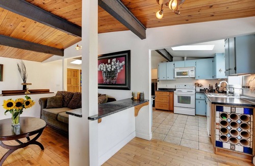 Walk up the garden path through fruit trees and grape vines across the large sundeck and through french doors into a rambling split level 3 bedroom main house. Help yourself to a bowl full of Blueberries - just don't pick them all.