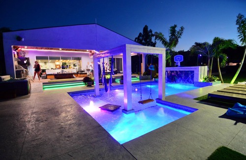 I grew up the son of an artist and you will see why. From the moment you pull up, you can't miss our house. Once you get out of the car you will feel like you stepped into your favorite Japanese steakhouse koi pond. This 3000 gallon koi creation inspired by the floating steps at the xcaret in Mexico, were built the same time as the big luxury resort pool it is 1800 sq ft of concrete with a 10' wide 5' high grotto Hugh Hefner is jealous of.