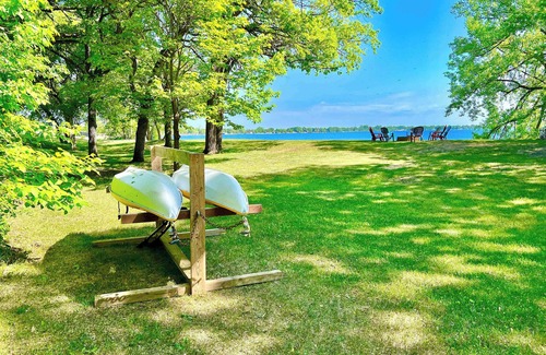 Enjoy time in this beautiful historic 4 bedroom lakefront home on West Battle Lake. Take in lake views from the large 4-seasons-room while playing games, watching TV, or just relaxing. Picnic on the front terrace or fish from the private dock. Kayak 'til your heart's desire. Visit Chief Wenonga across the street or hike trails just outside the front door. Roam the property & play outdoor games in the yard. Then at the end of a fun day, take a seat around the campfire and enjoy the sunset.