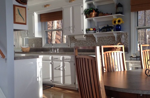 Sliders open onto an expansive deck. Incredible views.'perfect weekend', 'idyllic', 'romantic',' serene', 'beautiful setting',' "2nd trip better then the first'. These are all comments taken directly from the guest book. Our cottage is located on a very quiet and private area on Skaneateles Lake yet close to town. Excellent trout and bass fishing from the lakefront. Enjoy a glass of Finger Lakes wine down on the waterfront deck or on the deck wrapping three sides of the cottage. Shale beach-easy access for children. Enjoy swimming and boating on one of the cleanest lakes in the world. Two queen bedrooms, sleeping loft w/2 twins and queen bed and queen sleeper. New shower in bathroom. Walkout basement with TV and ping pong. Seasonal fixed dock. 2 kayaks and canoe . Watch the hills across the lake light up as the sun sets. Great location on the Lake. 4 miles to Village, one mile to Winery or Marina.