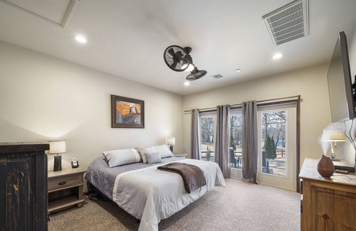 Welcome to our beautiful Lakefront Getaway located in a peaceful cove on Lake Eufaula. Our spacious, tree lined backyard includes an outdoor fire pit, hammock, tree swing and lots of room for kids to run and explore. Large, private boat dock for great fishing, swimming or space for your boat. Boat ramp is 300 yards from our front door. Three downstairs bedrooms have comfortable King beds, ceiling fans and smart TV's. The loft has 4 twin beds, ceiling fan, TV and Xbox. Come enjoy the Getaway!