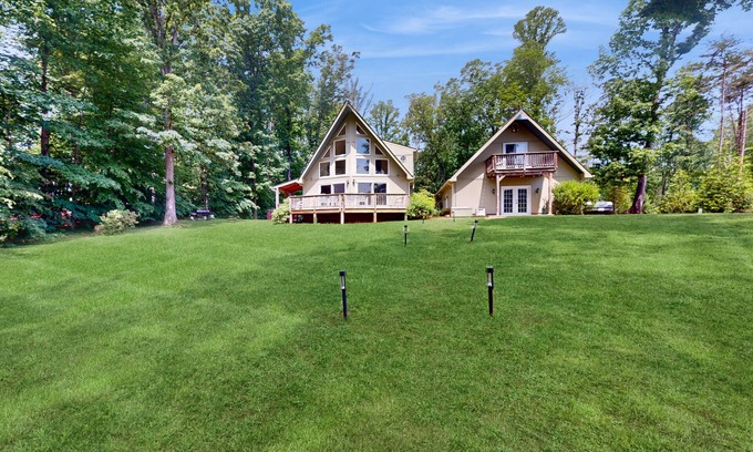 A hidden gem in Northern Virginia, Tortuga Bay is centered around the stunning shoreline of Lake Anna, one of the state's largest lakes. The perfect perch for adventure, your stay overlooks the water and is steps from beach access. Under the warm Virginia sunshine, cast your line and reel in various species of fish, utilize the boat ramp to get out on the water, and hop on the paddle board for a serene glide across the water. Water toys are available for the littlest members of your family, and a gas grill makes summer barbecues inevitable. A hammock, firepit, and multiple outdoor seating areas extend the entertainment.