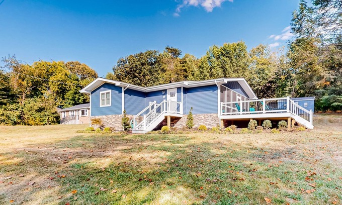 Spend summer days out on Lake Anna at this newly renovated waterfront home, where your grassy lawn rolls down to a private dock, a boat house, and a boat slip on the lakeshore. Take out the two provided paddleboards each morning, add the interchangeable seats to make them kayaks for the afternoon, and teach your kids to fish for largemouth bass, crappie, and striper.