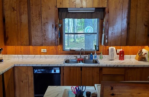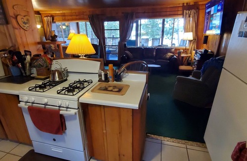 Our fully equipped kitchen is ready for easy entertainment. Inside Dining areas can seat up to 24. (Plus 4 tray tables!) Picnic table and multiple outdoor chairs are available outside for those who love it outdoors! Lakefront screened porch, provides gaming/eating space at a round oak table for 8 or more, as well as providing a wonderful location to relax and enjoy the lake (even build a puzzle there if you'd like). Nice lighting on the porch provides a great ambiance for evenings, and a great place to relax. Puzzles and games are available for quiet relaxation. We also have an antique piano available for the music lovers in your group. (Please use with care-no pounding please!).