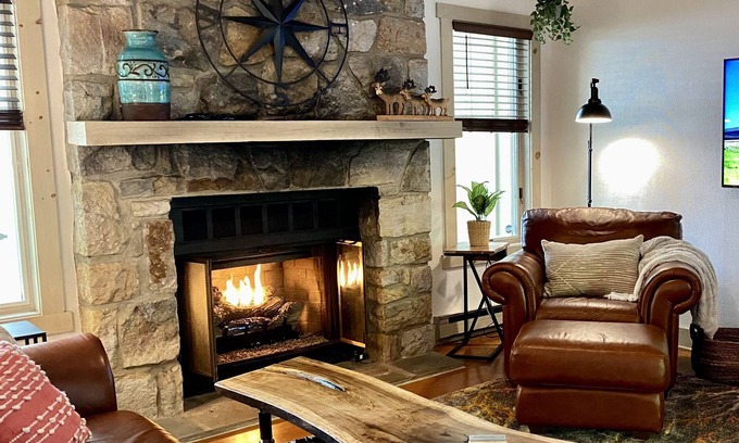 Our relaxing townhouse consists of a large eat-in kitchen, dining room and living room on the first floor. Find the bar area to store and grab drinks from the beverage cooler. The buffet cabinet in the dining area houses cards, puzzles and games for family game night! Cozy-up around the gas fireplace to watch movies or stream your favorite show. Living room LG TV also has cable channels. Sofa table adds plenty of extra seating for your group.