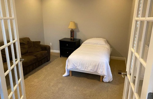 Lakefront view private bedroom and bathroom with kitchen is located in McCordsville, just 21 miles from Lucas Oil Stadium and 26 miles from Indianapolis Motor Speedway. This property offers access to a patio and free private parking. Outdoor seating is also available at the homestay. With free Wifi, this homestay offers a flat-screen TV, a washing machine, and a fully equipped kitchen with a dishwasher and oven. Towels and bed linen are featured in the homestay. The accommodation offers an air conditioning, a heating, and a private bathroom. There is an on-site bar. Indiana State Fairgrounds is 17 miles from Lakefront view private bedroom and bathroom with kitchen, while Marsh Grandstand is 18 miles away.