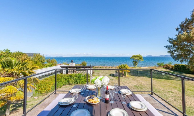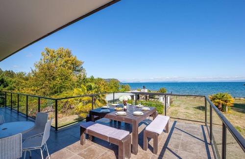 While away the hours gazing out at breathtaking views of stunning Lake Taupo, all from the comfort of your spacious, two-storey Tuscan style holiday home. Welcome to Lakefront Villa!