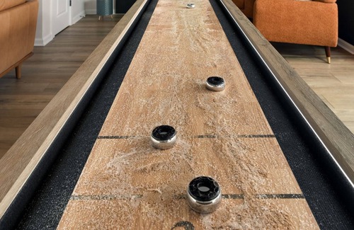 For added entertainment, you’ll also find a variety of kids' games in the bunk room, and a shuffleboard table in the lower-level living room.