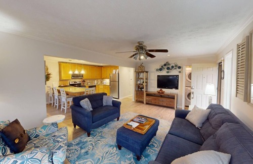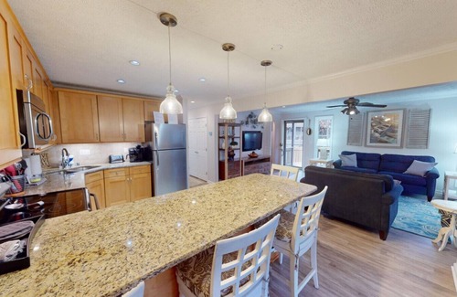 Well-appointed kitchen with stainless appliances features a bar area perfect for entertaining! The screened-in heated and cooled back porch w/lake views and a gas grill. The Primary bedroom has a king-size bed and Bedroom 2-King and Bedroom 3-Queen w/full trundle.
