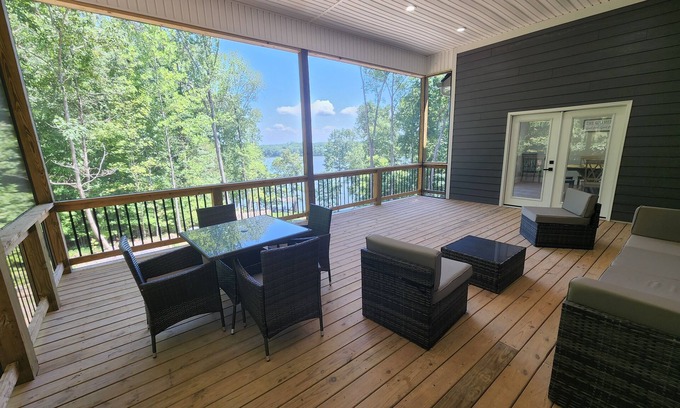 Private, lakefront property on 2.5 acres. 6000 sq ft home, 5 bedrooms and 1 bunk room. Each room has it's own TV set up with DirectTV. Sleeps 22 comfortably. 5 bathrooms Commercial grade gas oven, large kitchen island for extra seating. Bring the whole extended family to this spacious home for a great lake vacation. Bring your own boat or rent one nearby. 2 covered boat slips. Spacious screened in upper level deck with great lake views. Bottom deck has bed swing for great afternoon naps. Located 7 miles from Cadiz, KY for grocery shopping and restaurants. Nearest boat ramps and marinas are Moon River Resort, Lake Barkley State Resort, Prizer Point and Mershon's Bridge. Starlink Wifi is available.