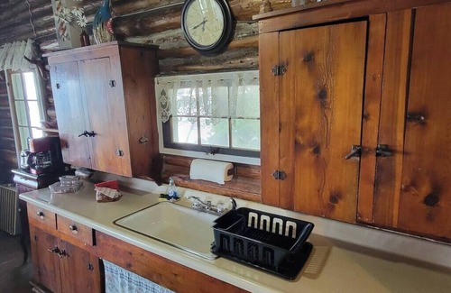 This is a very old log cabin with original everything. It is around 100 years old and has tons of charm. The bedroom is an addition behind the chimney so you get to wake up to old beautiful brick work to your right and the gorgeous sunrise to your right through original single glass windows.