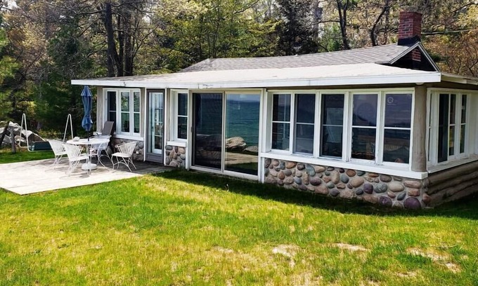Adorable space, old fashioned cottage right on Lake Huron. Large unclosed porch with bar. Fireplace and wood burning stove for heat. This cottage has the best views of the property and by far the best place to watch the sunrise.
