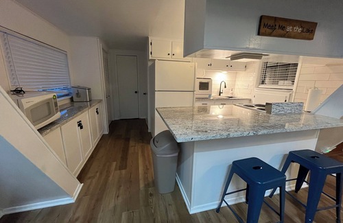 Everything you need to have an amazing stay at Possum Kingdom Lake. After exiting the house onto an amazing covered patio you walk down 5 stairs to a massive concrete patio that is right on the water. A short walk down the gangway and you are in paradise on a brand new dock with an amazing hangout area and jet ski port. The dock has a place to tie the boat up when you need to take a break. 10 min boat ride to Possum Hollow or Fox Hollow and a 12 min boat ride to Hells Gate you are centrally located right in the middle of the best Possum Kingdom has to offer. Possum Kingdom State Park is about 4 miles up the road and has an amazing store for anything you may need. They also have boat rentals if needed. This is also the best choice to launch the boat and drive it around to the lake cabin. There is no ramp available for use at the house. Boat trailers will need to be parked at the top of the hill. Please do not attempt to drive trailers down the driveway as it is on the steeper side and there is not room to turn a trailer around. There is a 3 car limit. Copy of ID for everyone over 18 must be provided as well as a copy of a Credit Card in case of damages. Please be aware there are outdoor cameras on the property. The cameras are located at the front door, driveway, back patio, and dock. Please note there is a Hydrohoist on the dock however it is not available for use. You are however able to tie up to the side of the dock. We have a Blackstone grill outside available for guest to use. We also have a charcoal grill available for use. Guest will need to bring charcoal.