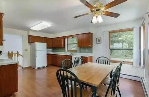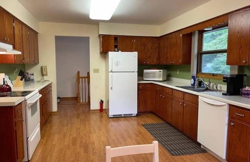 The kitchen will be stocked with all you need to cook and bake. Dinnerware for eight people is provided along with the appropriate silverware.