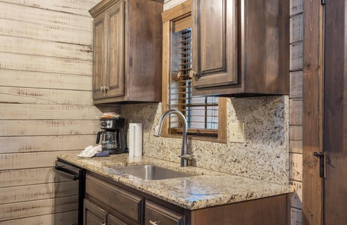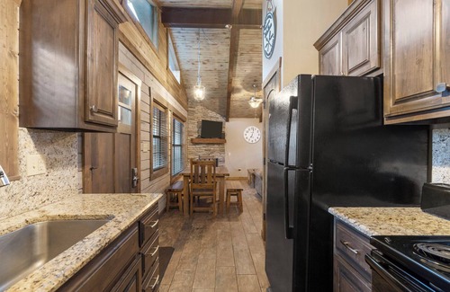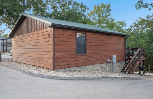 Welcome to family-friendly cabin 24 with Lake Access and room to sleep 6! This cozy two-bedroom cabin is located just steps away from the lake and so close to major attractions. You and your family will love this cabin, which offers a private, covered deck where you can soak in the natural beauty of the Ozarks after a busy day exploring Branson's famous shows and attractions. You can also cozy up to the living room fireplace and enjoy the warmth. The great room features a full kitchen with major appliances and a dining table, making it perfect for preparing meals and spending time together as a family. The primary bedroom comes with a king-size bed, ample drawer space, and a private bathroom. The second bedroom offers a queen-size bed plus a twin-over-twin bunk with a hall bathroom. Table Rock Resorts at Indian Point offers many amenities at no additional costs that your family will love!