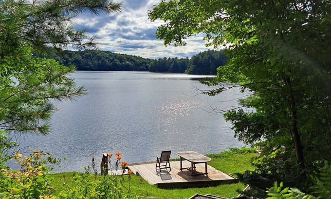 Welcome to one of the best lakeside spots in The Berkshires! This spacious house features a stunning private dock perfect for swimming and vast open grounds ideal for entertaining. Enjoy the cozy fireplaces and send the kids over to the guest house for movie time, which sleeps 2 and includes its own wood stove. With an open floor plan on the main level and a spacious TV room in the basement, this property is the perfect retreat for family and friends to create unforgettable memories together!