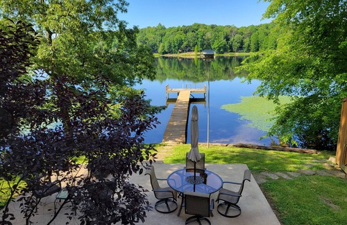 Our cabin is situated on Hohman Lake and is near the Shawnee National Forest. It's the perfect location for guests looking to hike and explore nature or visit nearby wineries. Renters may also swim or fish from the docks and bring their own kayaks or canoes to use on the lake. Please note that motorized boats are not permitted on the lake.