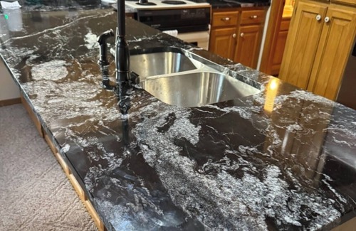 You are welcomed through the front door into the great room with floor to ceiling glass on each side of a massive native stone fireplace. Enjoy the flat screen tv with Roku streaming channels available while seated on the comfy leather sectional.