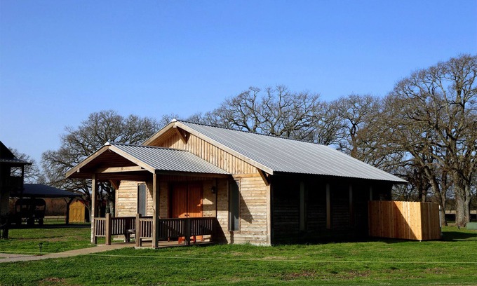 This two-bedroom cabin was once a wedding chapel. Completed in early 2021, it has all basic modern amenities, and sits at the tip of a 500 acre ranch.