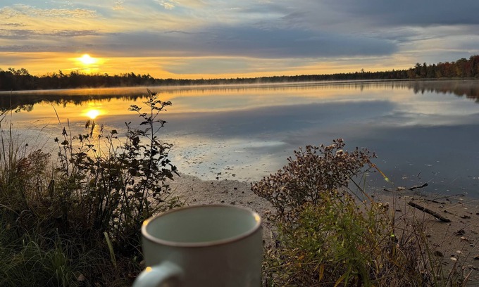 Relax with the whole family at this peaceful lakeside cottage. The cottage is situated minutes from ATV/Snowmobile trails, beaches and waterfalls on a private wooded lot overlooking a peaceful glass-like lake. Included garage parking in pole shed. Main bedroom has a cozy queen bed and dresser. Bunk room has a twin over queen bunk with twin trundle. Brand new fire pit and chairs. Enjoy nature and views from large, covered porch.