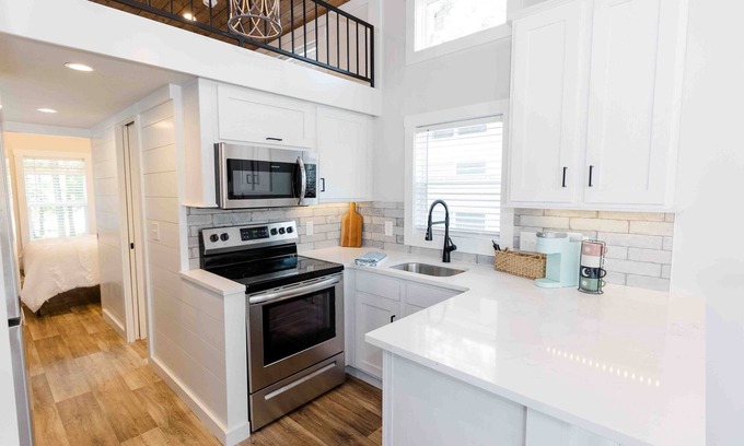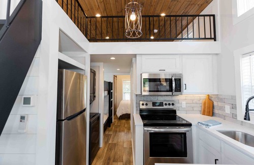 "Lakeside Chic: Stylish Family Retreat" invites you to indulge in the serenity of lakeside living with a touch of elegance. This charming tiny home offers a perfect blend of comfort and style, ensuring a memorable getaway for the whole family.