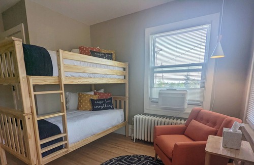 When you're ready for some shut eye, you can relax in the master bedroom equipped with a comfortable queen bed and designated work space for the traveling professional. If you're traveling with the children the fun and bright bunk room is perfect and features a reading chair for bedtime stories.