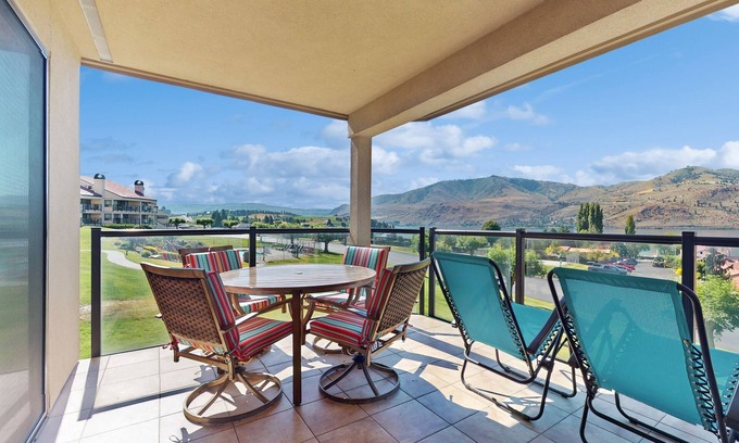 Best-rates for the Chelan condo starts from $240 per night with includes Internet, Air Conditioner, Security/Safety, Bedding/Linens, Fireplace/Heating, Barbecue/Outdoor Cooking, Child Friendly, Kitchen, Parking, Balcony/Terrace, Sports/Activities, Wellness Facilities, Hot Tub, Laundry, Pool, TV StayAndPlay offers fully equipped golf villas, golf hotels, golf resorts, luxury golf cabins, and exclusive golf retreats, making it easier than ever to find your perfect golf escape — ideal for families, peaceful getaways, or pet-friendly retreats with the whole crew.