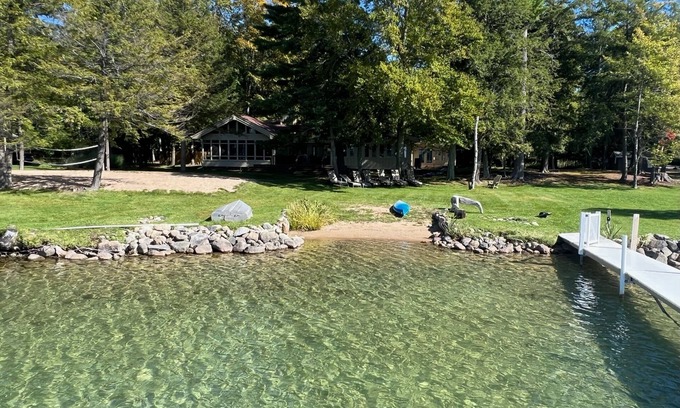150 feet of frontage on beautiful Elk Lake. The property is actually a 2 house compound. The 3500 square foot Main Cabin has 4 bedrooms and 3 full baths, includes bunk room with 5 bunk beds and covered porch with perfect lake views. The very private 1400 square foot back Guest Cabin with gorgeous fire place, 4 twin bed loft, and cozy master bedroom. Perfect for Grandparents that want a get away for the generations to enjoy together. Go swimming, boating and fishing in Northern Michigan's best kept secret Elk Lake. This is private frontage, with a bon fire pit for enjoying the amazing sunsets and personal sand volley ball pit that doubles as a giant sand box for the kids. The composite dock has large steps for swimming, and there is a mooring ball for tying off your boat. (We ask, and strictly enforce, that you not tie to the dock as storms can roll in quickly and we have lost several docks and boats over the years when guests don't use the mooring.) You are only a short boat ride from Downtown Elk Rapids and the World Famous Torch Lake Sandbar. Only about 20 minutes from Traverse City and a little farther to the wineries on Old Mission Penninsula. In wintertime it is a short ride to snowmobile trails and 35 minutes to Shanty Creek and 45 minutes to Boyne. We are able to split the properties for a cheaper rate in the late fall, winter and early spring. Rentals in June, July and August are 7 days Friday to Friday. There is a outbuilding on the property between the main house and the guest house that is not part of the rental and houses our personal items. Please be aware the property to the south is our neighbors and we ask, and will strickly enforce, that you not trespass. We will go over the guidelines on check in.