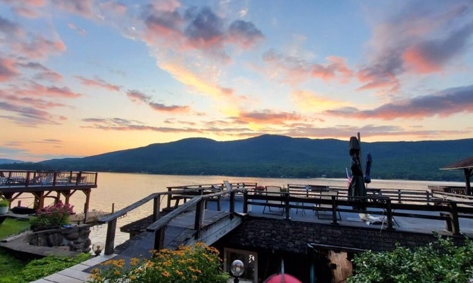 Kick back and relax in this calm, stylish space. Located by Sandy Bay on Lake George, on Cleverdale Rd which is the east side of the lake. Amazing mountain and lake views. Enjoy patio seating off the living area. Access (shared) to open and covered boathouse for lounging, dining, or entertaining. Take a jump off the boathouse right into the lake! Hiking within minutes as well!