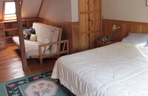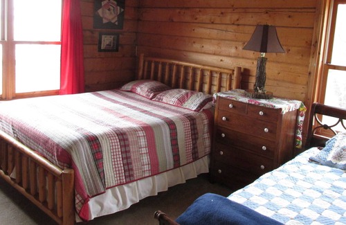 2 story log home, on 9 wooded acres, with 1700 sq. ft. living space, one fireplace in great room. Plus a 600 sq. ft. screen room with an additional fireplace, for those chilly nights. A large deck in the back with extraordinary lake views and sunsets! 3 bedroom, 2 bath, a loft with a pool table, a washer and dryer located in the first floor bathroom. Take a look at our photos, our home is clean and well maintained. It is a single family residence, not part of a resort. It is surrounded by woods and nature. Come relax and enjoy the peace and quiet.