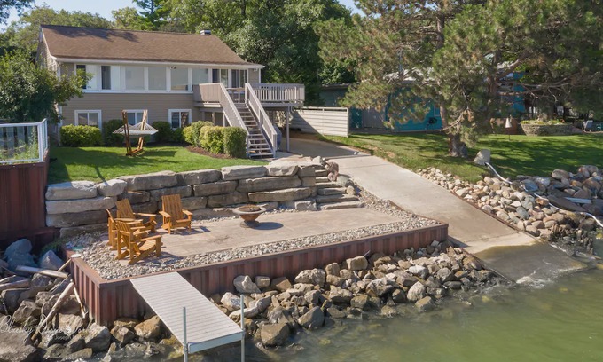 Soak in the sunrise with a panoramic view from the kitchen and enjoy the sunset by a bonfire on the patio in this newly remodeled cottage. Located on Sand Point's north shore, this house leaves you wanting for nothing with its private launch- perfect for canoes and kayaks. Spacious enough for the entire family with two bedrooms upstairs and three bedrooms downstairs with a second common area- perfect hangout for the kids! We’re excited to host you for a relaxing getaway.