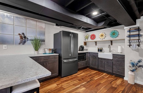 Enjoy drinks and snacks at the full bar or head to the basement kitchen (yes, a second kitchen!) to keep the fun going without interruption.