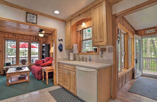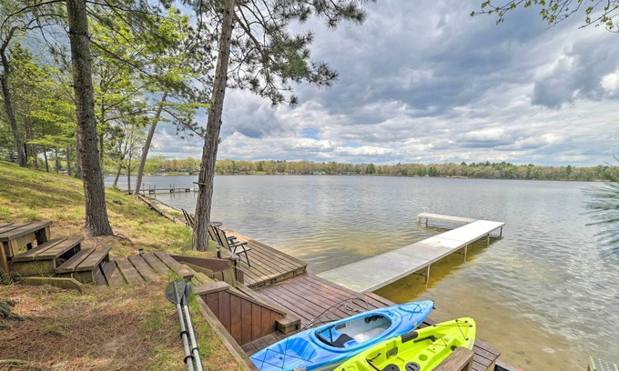 Come on in, the water’s fine! Tucked away in Northeast Michigan lies this lakeside vacation rental packed with family fun. This 2-bedroom, 1-bathroom National City cottage ensures you have everything you need for some well-earned relaxation: watch the sunset from the dock, stargaze on the deck, or break out a board game. Plus, great swimming awaits in Round Lake/Indian Lake, with a hard sandy bottom to sink your toes in. When it’s time to explore, you can find adventure in nearby East Tawas.