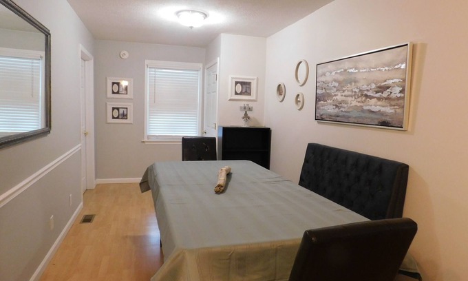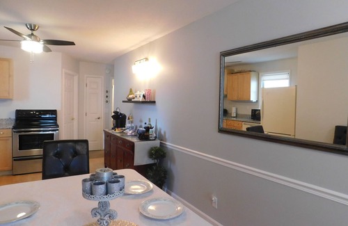 Amenities include central air, wi-fi, 2 dishwashers, two fully equipped kitchens with new cookware, washer and dryer (downstairs), gas grill, enclosed front porch, bath towels, and hotel quality bed linens.