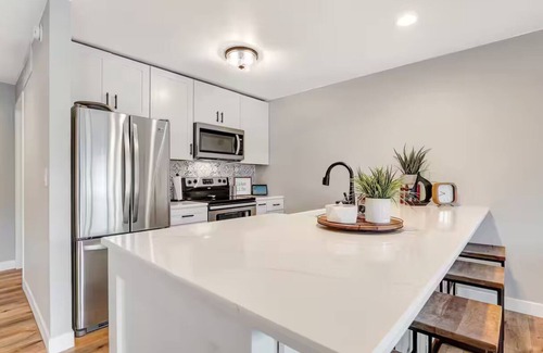 The condo includes one reserved parking space (#124) that is located at the top of a set of stairs that will take you one flight down to the condo entrance. Extra unmarked/unreserved parking spots are available as well on the left side against the concrete wall. Please do not park in any numbered spot other than #124 - your vehicle will be towed at your expense. You will enter via keyless entry with the code sent to you within 72 hours of check-in.