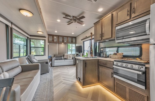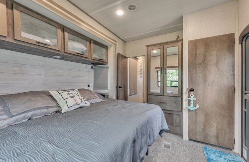 Beautiful Lakeside retreat on Neely Henry Lake. Relaxing and peaceful, short drive to restaurants and grocery stores, boating and fishing galore. Open the window shades and enjoy the sunrise and sunset from the comfort of the recliner! This beautiful 2020 Salem Villa Park model, with 8 ft. ceilings and 7 ft. ceilings in the slide outs, sits on a peninsula on the Coosa River with water all around. You can get to Gadsden by boat from here!